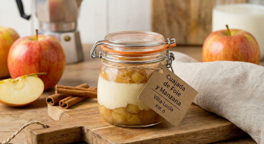 Tarrito hermético individual de cuajada de foie con compota de manzanas de Villa-Lucía KM. 0