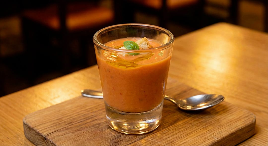 Txupito individual de crema de tomate de caserío a nuestro estilo